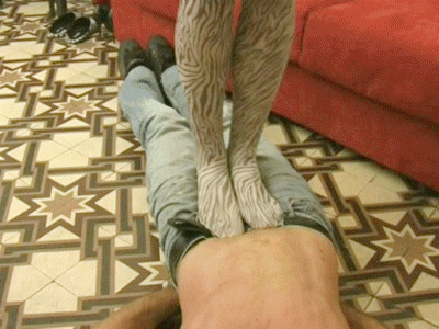 Diese Herrin trampelt heute mit ihrer geilen Strumpfhose auf ihrem Sklaven herum. Athena stellt sich auf seine Eier und zerquetscht sie fast mit ihrem Gewicht! Auch vor seinem Gesicht macht sie keinen Halt und hockt sich sogar noch drauf, um ihr Gewicht noch stärker auf sein Gesicht zu pressen! Ihre Nylonfüsse duften schon und so hat er auch noch ihren Geruch in seiner Nase! Auf seinem Hals drückt sie ihm dann noch mit den Füssen die Luft ab!