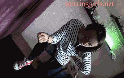 Goddess Anna ist wütend! Dieser dämliche Loser wagt es doch tatsächlich, ihr wieder unter die Augen zu treten... doch seinen hässlichen Anblick kann sie einfach nicht mehr ertragen und deshalb rotzt sie ihm ganz einfach in seine hässliche Visage! Schöner wird er dadurch zwar lange noch nicht, aber als ihm so der Speichel an seiner Nase runter rinnt, über seinen Mund hinweg und noch weiter, da kann sie immerhin zufrieden den Ekel und die Angst in seinen Augen sehen...!