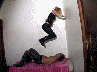 Heute bekommt der Fußanbeter das härteste Trampling seines Lebens, denn die brutale Mistress springt extrem auf dem Körper herum und sie scheut sich auch nicht, das Gesicht mit harten Tritten zu quälen. In süßen Stiefeln stellt sich die grausame Mistress auf die Nase des Losers und zerquetscht sie fast. Mit voller Wucht springt und hopst sie auf jedem Körperteil herum. So demonstriert die Mistress ihre Macht über den mickrigen Stiefellecker. Nach dem brutalen Trampling wird der Loser zahm hinter ihr her kriechen.
